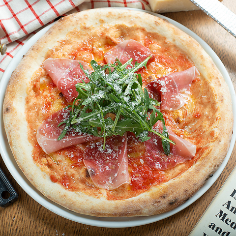 パルミジャーノ、トマトソース、生ハム、ルッコラ