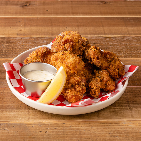 MMC*名物のバターミルクフライドチキン。外はカリッと、中はジューシーなチキンを、酸味とハーブが効いた「ランチソース」で。