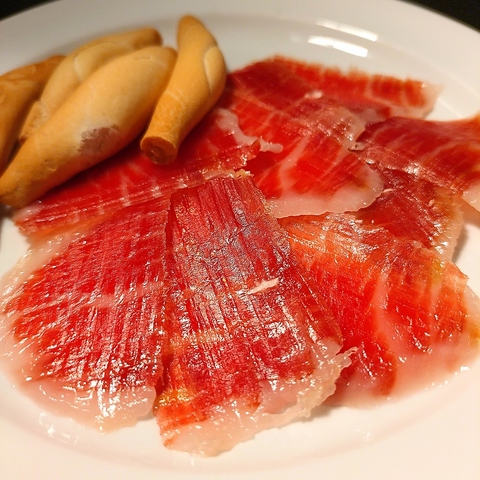 イベリコ豚生ハムは原木からハンドスライスしたものをご提供しています。