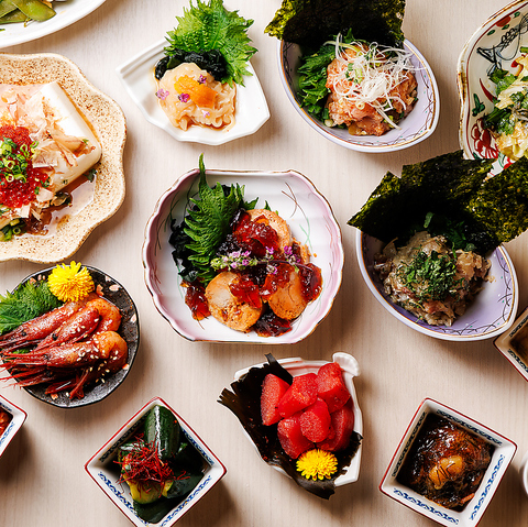 「お造り8種盛り合わせ」や「よだれブリ」のほか、「甘エビきむち」などメインからおつまみまで種類豊富!ゆったり個室でお過ごしいただけます♪