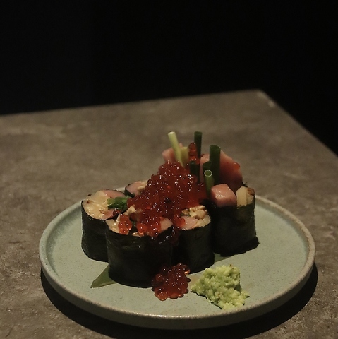 本鮪、ネギ、いぶりがっこをふんだんに使用し海苔で巻いた、よだれの名物料理!とろける鮪の脂と薬味の相性は抜群です!もちろんお酒のアテにピッタリなのでお箸もグラスも止まらなくなること間違いなし!しゃぶしゃぶ以外にも居酒屋メニューも充実しております!是非ご賞味ください!
