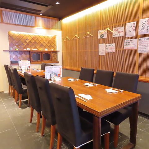 広々としたテーブルはたくさんのお料理を注文しても安心で、大勢で楽しむのにおすすめ。20名以上の大人数でも利用可能なので、会社飲み会や親しい仲間との集まりなど各種宴会にご利用いただけます。貸切予約も承ります!人数やご予算などお気軽にご相談ください。混み合うシーズンのご予約はお早めに!素敵な思い出づくりをお手伝いいたします!