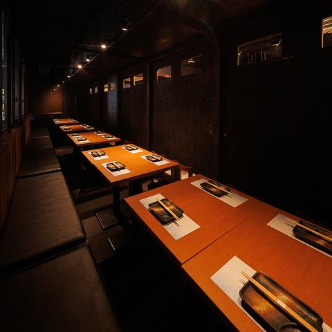 .和のテイストをあしらった大人な雰囲気の当店は、2名様から団体様まで使える扉付きの窓際完全個室を完備!個室では紙タバコも喫煙可能となっております。個室でゆったりと特別なひと時をお過ごしいただけます。デートや接待、飲み会などにぜひ。貸切やご宴会などにおすすめのコースは3~70名様まで対応可能です。