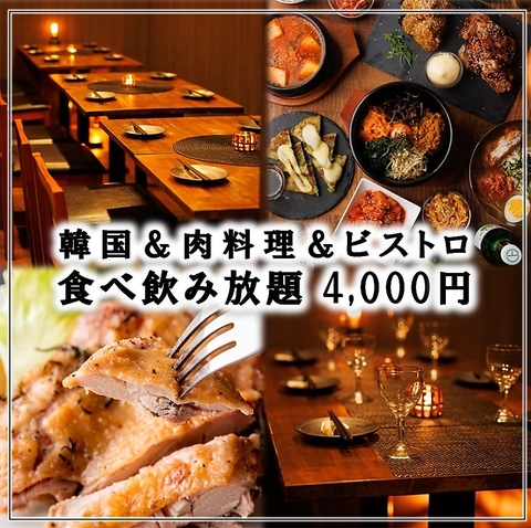 韓国料理&チキン&和食など『130品食べ飲み放題コース』3H飲み放題5500円→4000円