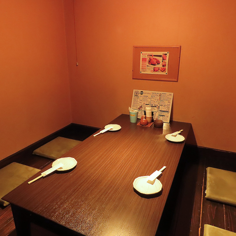 4名様用の掘りごたつの個室は、小規模なご宴会や、ご家族・友人とお過ごしいただくのにおすすめなお席です。落ち着いた空間のため楽しくお話ししながら食事をお楽しみいただけ、プライベートな空間で楽な姿勢でゆったりとお過ごしいただけます。ぜひ皆様で当店自慢の焼き鳥を囲んで特別な時間を過ごしにいらしてください。