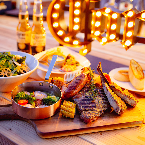 お洒落なテラス席で堪能するBBQ&ラグジュアリーメニューで日常を忘れる素敵な時間を!