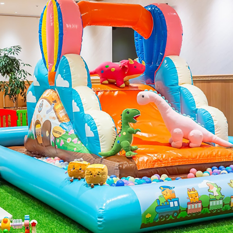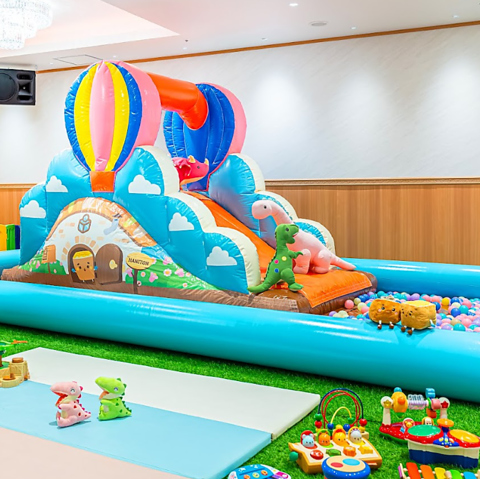 ふわふわ大型すべり台で大興奮!おうちにはないサイズで楽しめます※画像はイメージです