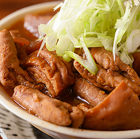 わが家特製大人気メニュー!じっくり真心こめて煮込んだもつ煮込みを是非ご賞味ください。
