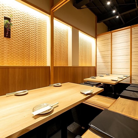 デザイナーが手掛けた落ち着いた大人空間♪当グループの自慢の空間作り!掘りごたつ席は、記念日・誕生日会、デートや会社の仲間内の飲みにもご利用いただけます。静かで落ち着いた空間は接待にもぴったり。合コンや家族でのお食事にも最適な個室です◎