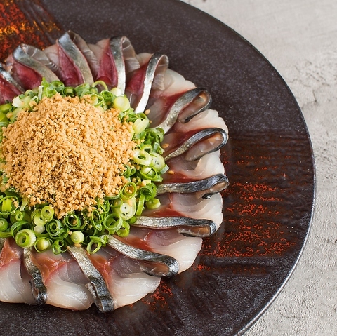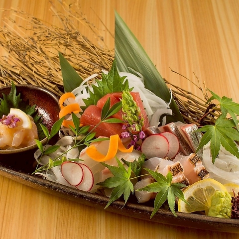 鮮魚の刺身は格別です!対馬産などをはじめ九州の鮮魚を厳選し、旨みを詰め込んだ鮮魚をお届け致します。当店では、炙りサバ、ごま鯖、タイ刺身、カンパチ刺身、そして本マグロなどをご用意しております!呼子産の活きイカ造りは必食です◎