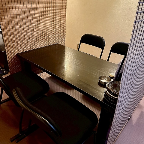 【プライベートな空間で楽しもう】テーブル個室が2~4名様×3用意されています♪会社宴会や各種パーティーにおすすめな空間で、家族でもリラックスして楽しめる。心地よい和の雰囲気が広がる個室で、大切な仲間たちと特別なひとときを過ごしてみてはいかがでしょうか。美味しい料理と共に、楽しい時間をお過ごしください。