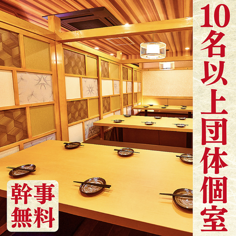 カップル様でも団体様でも個室を利用可能!和の上質な空間の完全個室で周りを気にせずに美味しい海鮮料理と種類豊富な地酒をご堪能いただけます。お仕事の後に晩酌でもいかがでしょうか♪感染症対策も徹底中!お料理提供の際のお客様への小皿提供も可能です!お気軽にお声掛けくださいませ♪昼宴会もお気軽にお問い合わせください!!