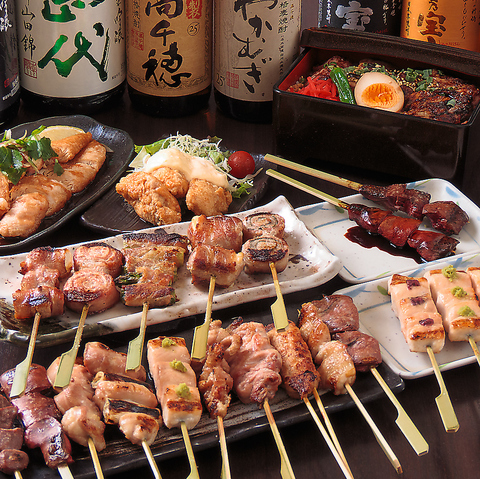 当店の人気串7本と、鶏塩ユッケやとり天、鶏だし茶漬けなどの信玄鶏を楽しめるコース!各種ご宴会にオススメです◎