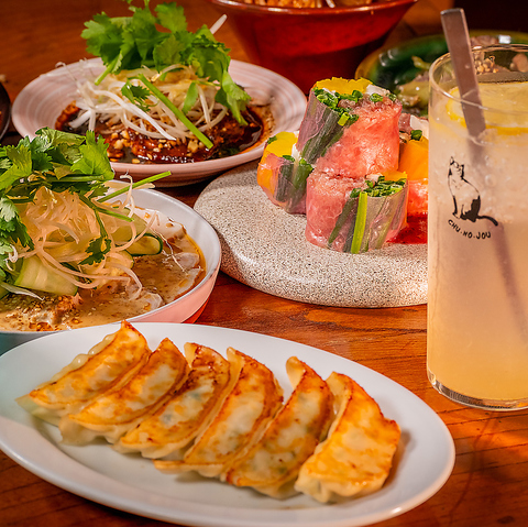 一番人気は「合法ハーブ餃子」。ニンニクなしの餃子もご用意もございますので、女性の方も安心です◎