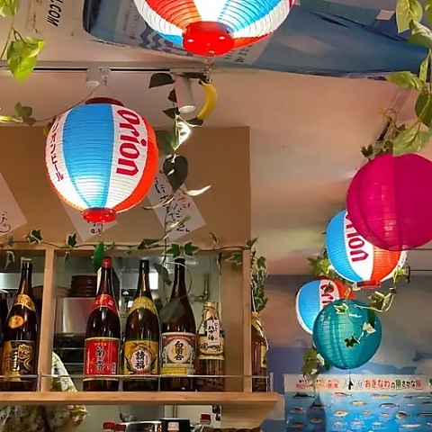 お店に入ると沖縄古民家風の南国空間が広がり、提灯や小物で現地の雰囲気を再現。『ゴーヤーチャンプルー』や『ラフテー』、『海ぶどう』など沖縄の定番料理が揃い、香りや味わいも本格的。ゆったりした空間で、友人や家族と会話を楽しみながら、心も体もほっと寛げるひとときをお過ごしください。