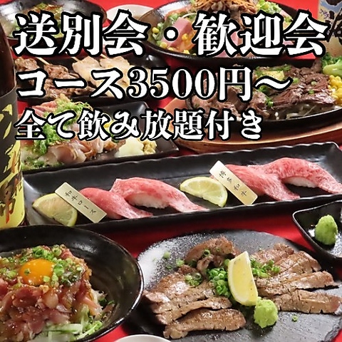 肉寿司・焼き鳥・焼き肉が入ったお得な飲み放題付きコースが3500円~ご用意◎様々なシーンに対応可☆