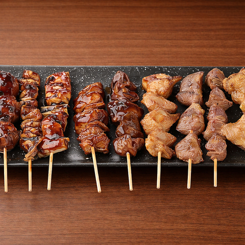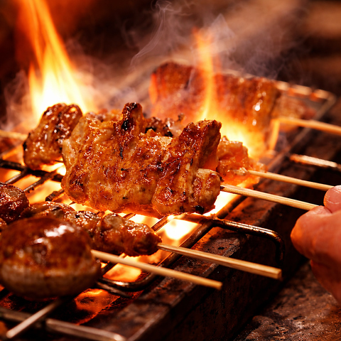 職人が一本ずつ丁寧に焼き上げる炭火焼き鳥を、お財布に優しい価格でご用意しております。名物の鶏かわ串は一本九十円、ジューシーな手羽先は九十九円と、赤字覚悟の破格設定!お酒との相性も抜群な自慢の串料理を、開放的な店内で気軽にお楽しみ下さい。本日も元気に営業中!ネット予約からのご来店をお待ちしております。