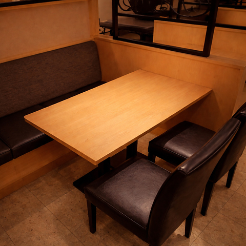 仕事帰りや少人数での集まりに、気兼ねなく立ち寄れるテーブル席をご用意しております。木目調の落ち着いた雰囲気の中、自慢の炭火焼き鳥や鮮度抜群の海鮮料理をカジュアルにお楽しみください。浜松町駅からのアクセスも良く、サク飲みや普段使いにも最適です。活気ある店内で、一日の疲れを癒やす至福のひとときを。