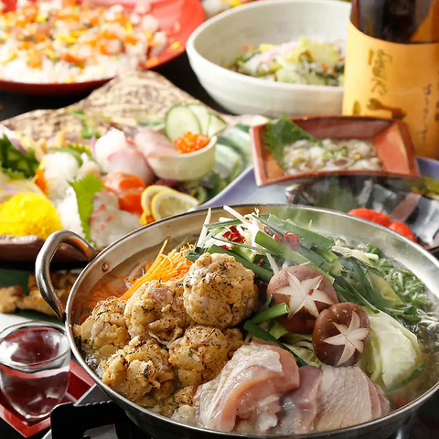 【3H飲放】大山鶏のちゃんこ鍋食べ放題×鮮魚刺し盛に天麩羅や地鶏炭火焼含全8品5380円⇒4500円