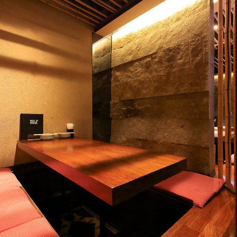 ゆったりできる掘りごたつ席。和の温もり溢れる落ち着いた空間で、新鮮な食材を使用したこだわり料理と種類豊富なお酒を堪能し、至福のひとときをお過ごしください♪