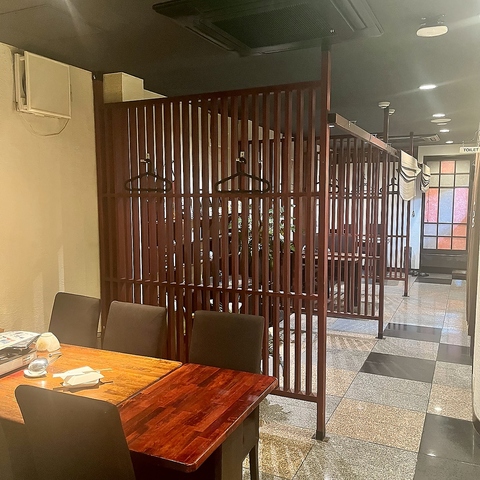 シックで落ち着いた店内に飾られる数々の有名人のサイン。1Fは掘りごたつ席とテーブル席、2Fにはくつろぎのお座敷席を完備。個室もご用意しております。各テーブルに換気扇も設置されており、感染症対策も万全!気になる匂いも服につきにくいです!