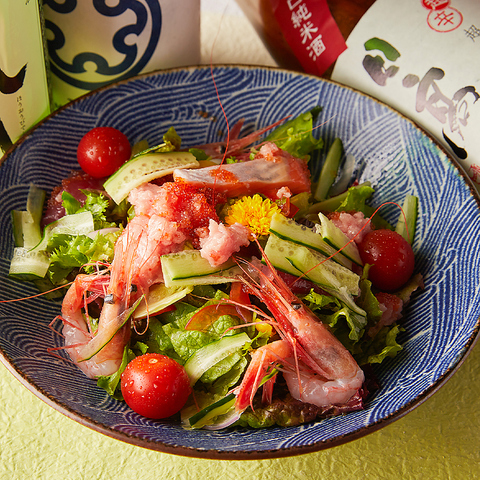 新鮮な旬の海鮮をふんだんに盛り込んだ贅沢サラダ。彩り豊かな野菜と合わせました。見た目も華やかで、女子会や記念日のお食事にもおすすめです。