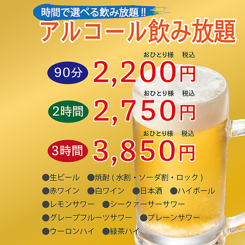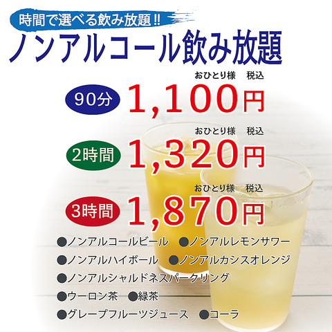 | ノンアルコール飲み放題 180分 | 1,870円 |