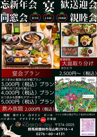 | 飲み放題 | あり :宴会プランのみご利用いただけます。 |