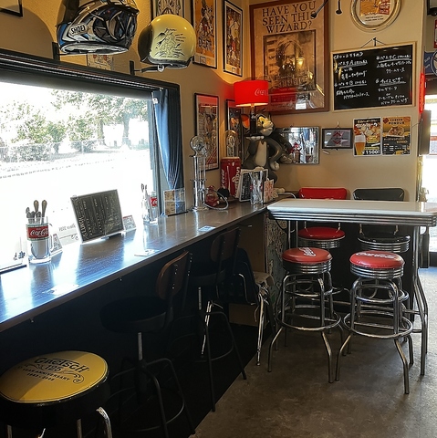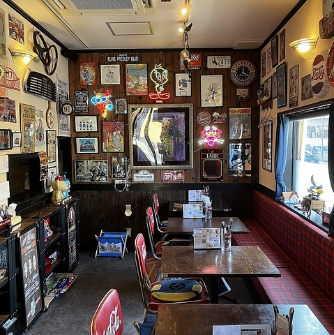 オーナーが集めたアメコミ、カートゥーンを中心にした雑貨が並ぶ賑やかな店内がお食事を盛り上げます!