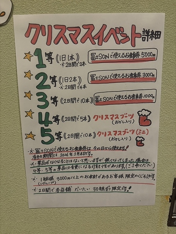 12月24日(水)・25日(木)にXmasイベント開催♪3000円以上お会計時にくじ引に参加できます!※2日間で30組限定