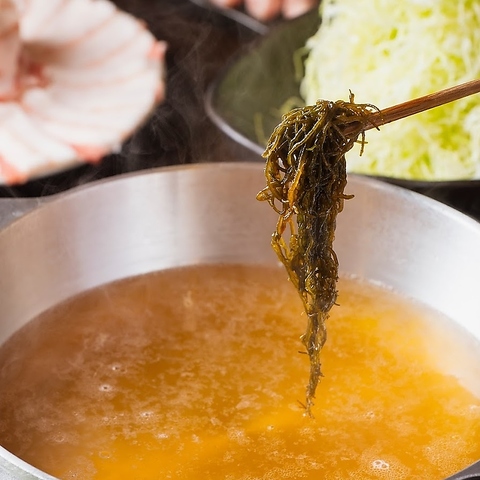 当店自慢の自家製出汁で食すあぐー豚しゃぶしゃぶです。相性抜群の山盛りキャベツともずく、島豆腐がセットになっております。〆にはあぐー豚や野菜の旨みが染み込んだ雑炊もどうぞ!