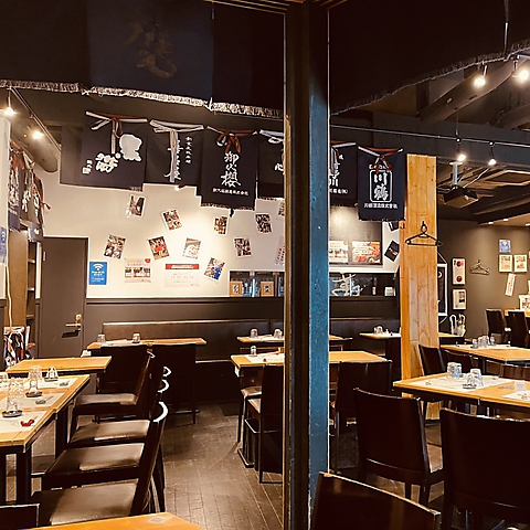 【店内】荏原中延駅徒歩1分。ワンフロアの店内は蔵を思わせる黒と茶を基調とした空間です。入ってすぐ目を惹くのは壁一面の地酒専用の冷蔵庫、中には全国津々浦々の地酒が都道府県別に並んでいます。テーブル席、カウンター席、個室と様々なスタイルのお席をご用意していますので、どうぞお気軽にご利用下さい。