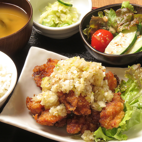 【月~金曜日限定】11:30~14:00(LO13:30)でランチ営業中☆彡からあげに祭特製のネギだれをかけた唐揚げ定食やじっくり煮込んで熟成させたもつ煮込み定食をサラダとご飯・お味噌汁までついて¥1000以内でお召し上がりいただけます!