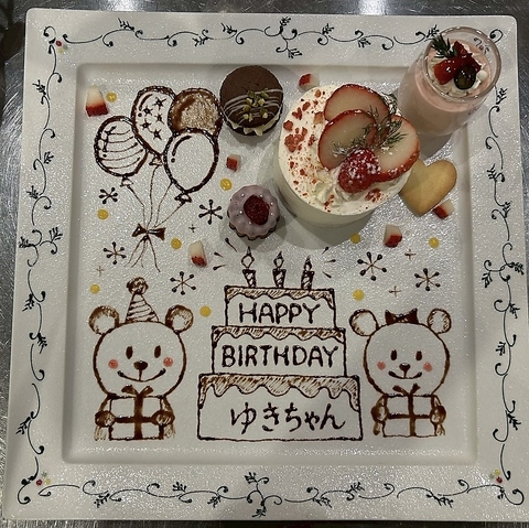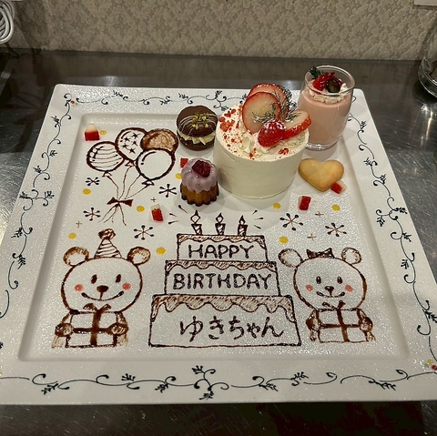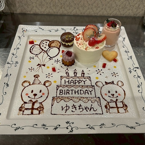 誕生日、記念日のお祝いにピッタリの特製プレートをご用意しております。事前のご予約が必要となりますのでお気軽にお問合せ・ご予約下さい♪