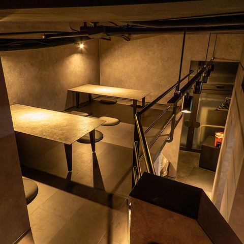 お店自慢の中2階のお席は、おしゃれで雰囲気が良くプライベート感を演出します。コース予約のみの受付になりますので、コース料理を楽しみながら最適な空間で心地よい時間を過ごせます。また9名様から貸切も可能ですので、仲間とプライベートな空間で好きな食事やお酒を楽しみながら特別なひとときを過ごすことができます。