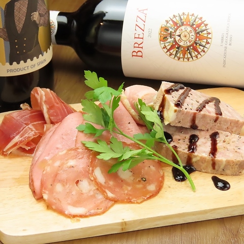 ハモンセラーノ、イタリアンサラミ、ローストポーク、パテドカンパーニュの盛合せ(約2人前)