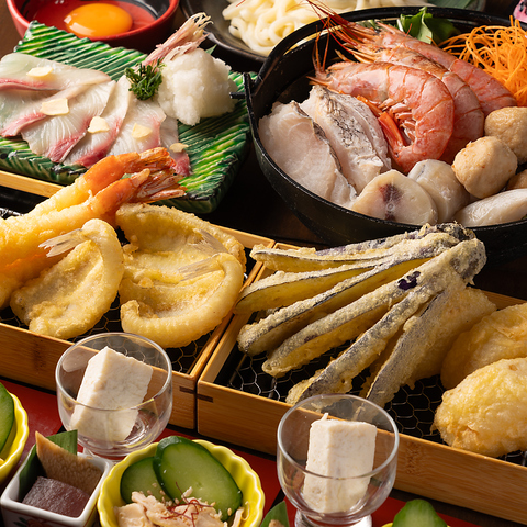 和モダンなお洒落な雰囲気の中で、名物の天ぷらやフグの寄せ鍋など、いづち自慢の料理全11品を堪能できるコース♪仲間との飲み会や会社の飲み会、デートにも最適!