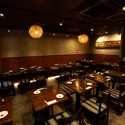 【全44席】暖かみのある和モダンな内装の店内はこだわりです。ゆったり料理とお酒に舌鼓を。貸切は30名様から対応いたします。是非ご相談ください!