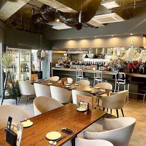 2名から4名様向けのテーブル席がございます。テーブル面を広くとっているため、ゆったりくつろぎながら、お食事をお愉しみいただけます。ご利用人数に合わせて、テーブル席エリアをパーティスペースとしてご利用可能。肩ひじ張らない、アットホームな雰囲気 広いテーブル席。お肉本来の旨味を、堪能できます!
