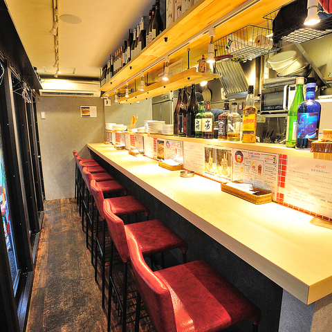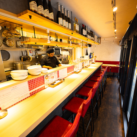 心地よいカウンター席で特別なひとときをお楽しみください♪友人との語らいや、一人飲みにも最適な空間。目の前で調理される料理の香りが食欲をそそり、新鮮な食材を使用した絶品メニューが揃っています。新メニューも随時出しております♪【大阪/天満/居酒屋/イタリアン/牡蠣/海鮮/昼飲み/女子会/デート】