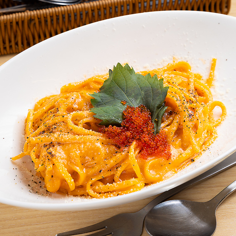 新鮮な渡り蟹を贅沢に使用したトマトクリームパスタ!濃厚なトマトソースとクリーミーな風味が絶妙に絡み合い、海の旨みが広がります。一口食べれば、渡り蟹の甘みと新鮮さが口いっぱいに広がり、思わず笑顔に♪自家製のパスタはモチモチで、ソースとの相性も抜群。【大阪/天満/居酒屋/イタリアン/牡蠣/海鮮/昼飲み/女子会/デート】