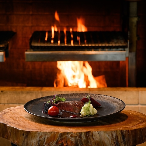 鹿児島県産黒豚や黒牛、地元でとれた野菜を薪火でグリルし、表面はカリっと香ばしく、中はふっくらジューシーに仕上げます。シェフの経験を生かした逸品をご堪能ください。