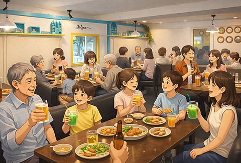 お子様連れのご来店も大歓迎です!ベビーカーのまま座れる座席や、貸し出しの座椅子、お子様用の食器もご用意しております♪皆様のご予約・ご来店を、スタッフ一同心よりお待ちしております!