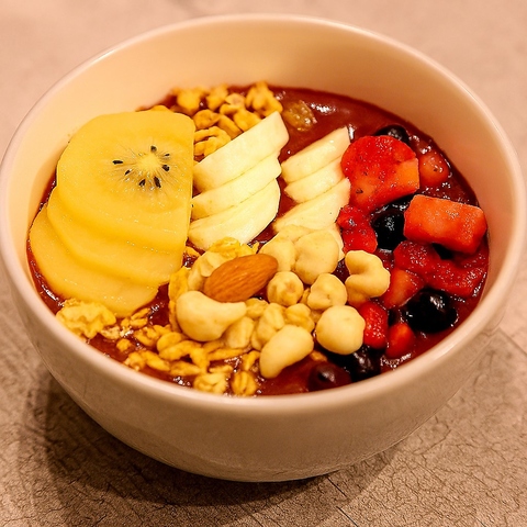 ヘルシーなスムージーボウル!アサイーは抗酸化物質や食物繊維が豊富で、エネルギー補給や美容にも効果的♪