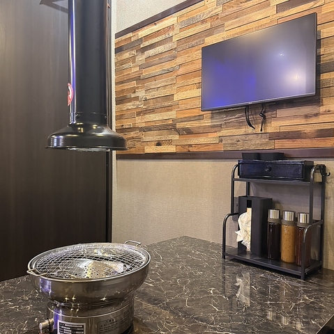 【飲食ブース|6名様掛けテーブル×3席、4名様掛けテーブル×3席◆】飲食ブースでは、皆様でお肉を焼きながら楽しいひとときをお過ごしいただける空間を演出しており、ごゆっくりおくつろぎいただけるソファー席もご用意しております。ご家族やご友人様とご一緒に美味しいお肉をご堪能ください♪