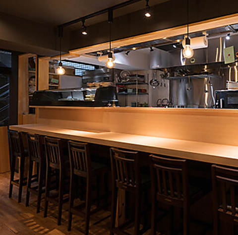 【カウンター席は、デートやお1人様に人気のお席】調理風景を目前で眺められるライブ感が魅力のカウンター席は、お一人様はもちろんデートにもおすすめです♪