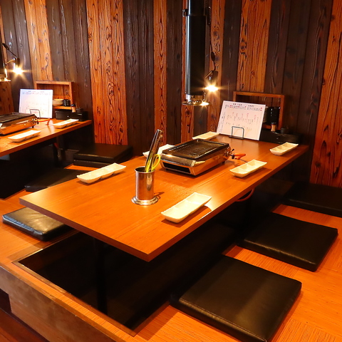 【最大23名まで】落ち着いた雰囲気の店内は、木材を全体的に使い和の雰囲気を演出。くつろぎやすい掘りごたつで上質なお肉をお楽しみください。牛タンをはじめ、ロースやカルビに至るまで、妥協なしのお肉をご用意しております。宴会にもプライベートでもご利用いただけます。