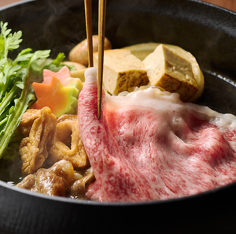 注文が入ってからスライサーで切りたてのお肉を味わう「しゃぶしゃぶ」。自家製のごまだれか、あごだしで旬の野菜と一緒にお召し上がりください。「すき焼き」は山形県の養鶏場「半澤鶏卵」から直送の新鮮で濃厚な卵をたっぷりつけて。厚切りの「ステーキ」はジューシーなお肉を味わう最高の食べ方です。