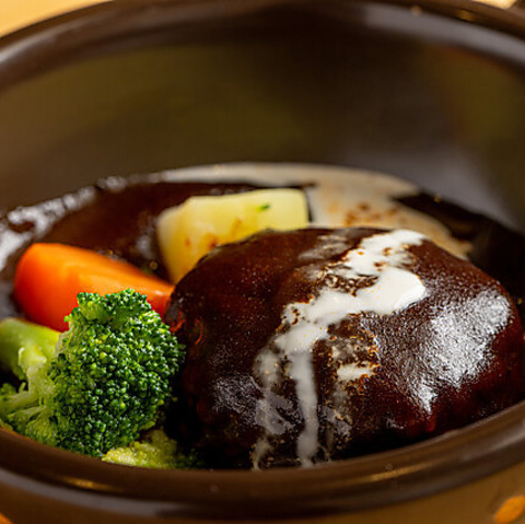 これまでの倍の大きさになったジューシーなハンバーグをコトコト煮込みました