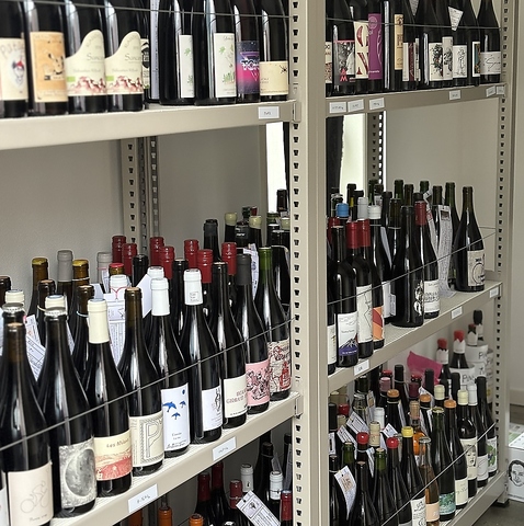 青い空とPINK。3Fのワインセラーは150種類、200本以上のナチュラルワインを取り揃え。世界各国のナチュラルワインを取り揃え、グラスは赤、白、ロゼ、泡とバランスよく8~9種類を用意。ボトルはお好みをお伝え頂ければセラーから見繕います。